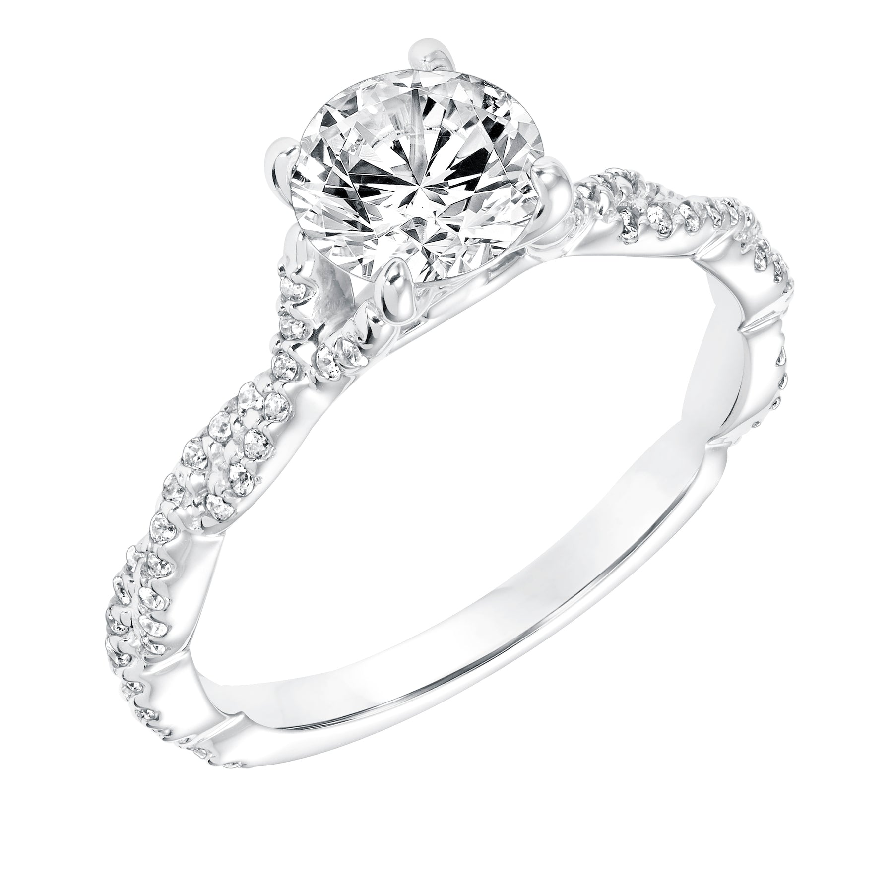 Diamond Prong Set Engagement Ring with Twisted Diamond Shank. Center Stone is not included.