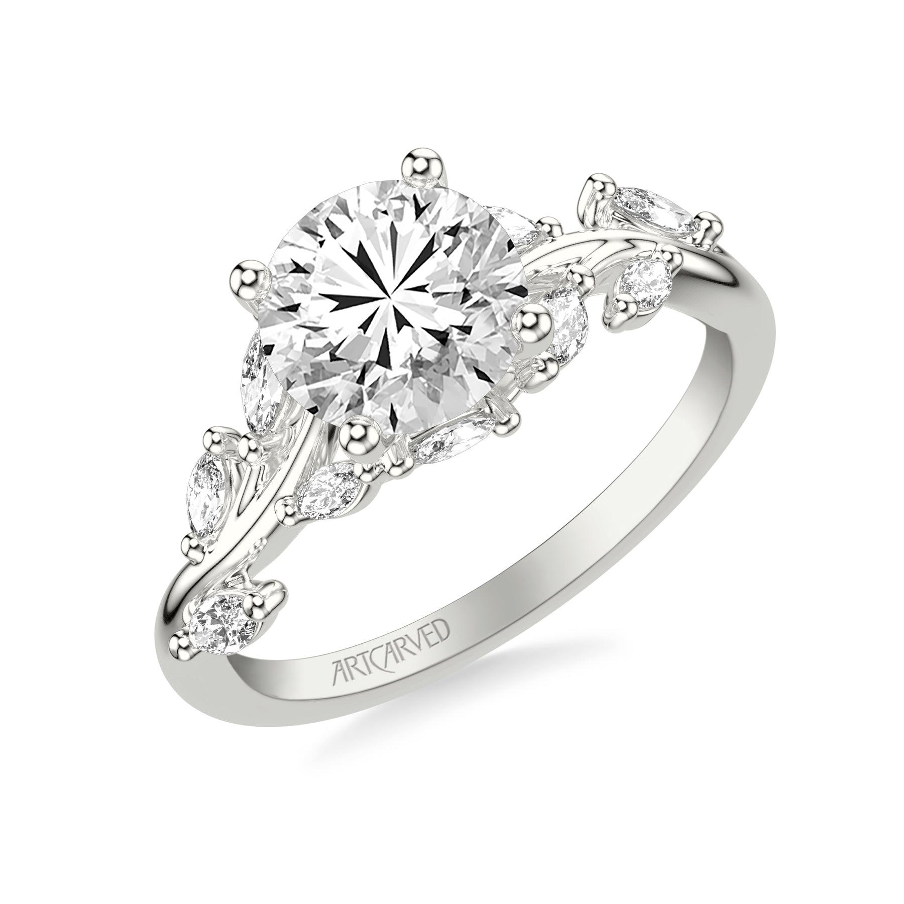 Floral Engagement Ring with Prong Set Marquise Diamonds and Hidden Diamond Accent. Center Stone is not included.
