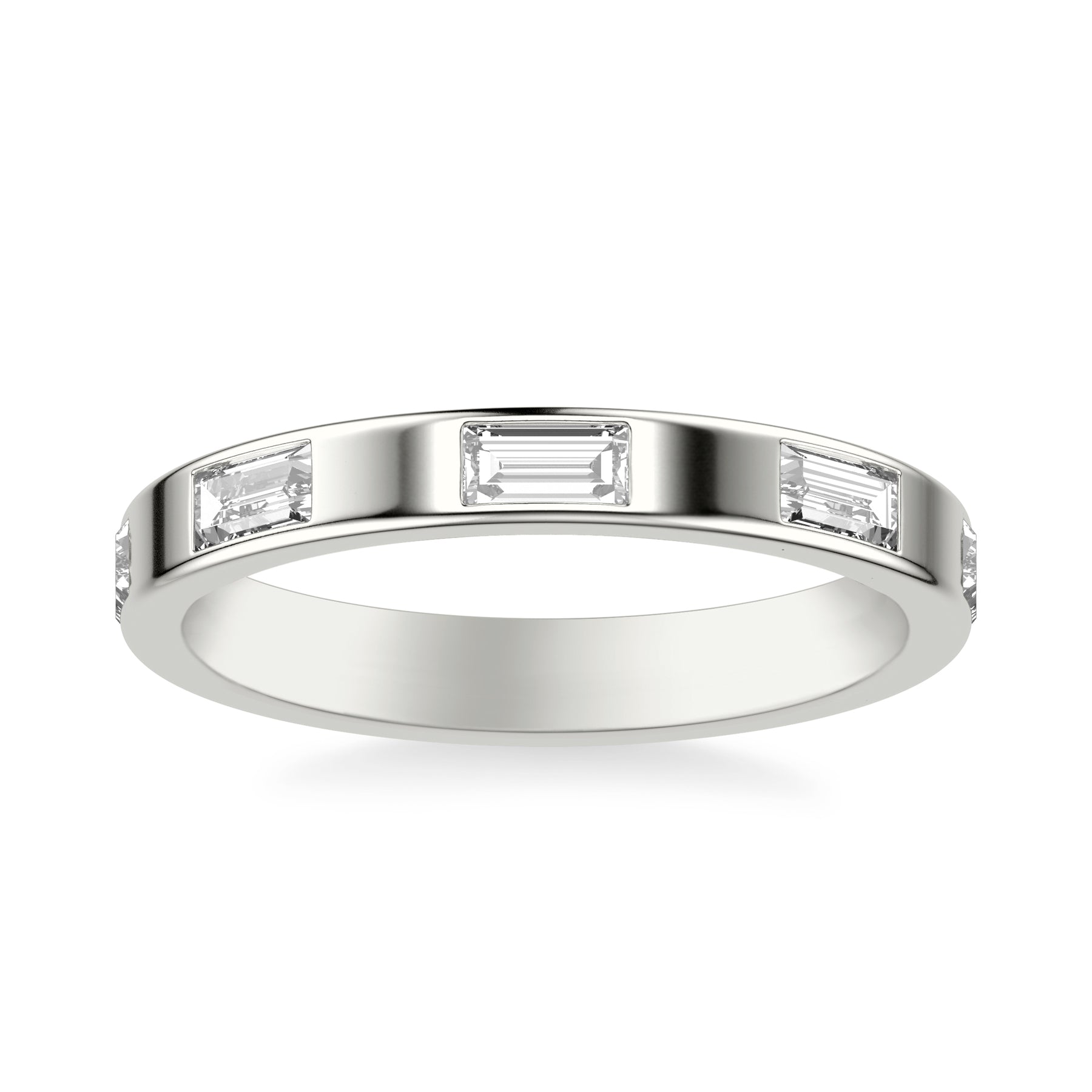 Contemporary Wide Wedding Band with Bezel Set Distance Baguette East/West Diamond Polished Band