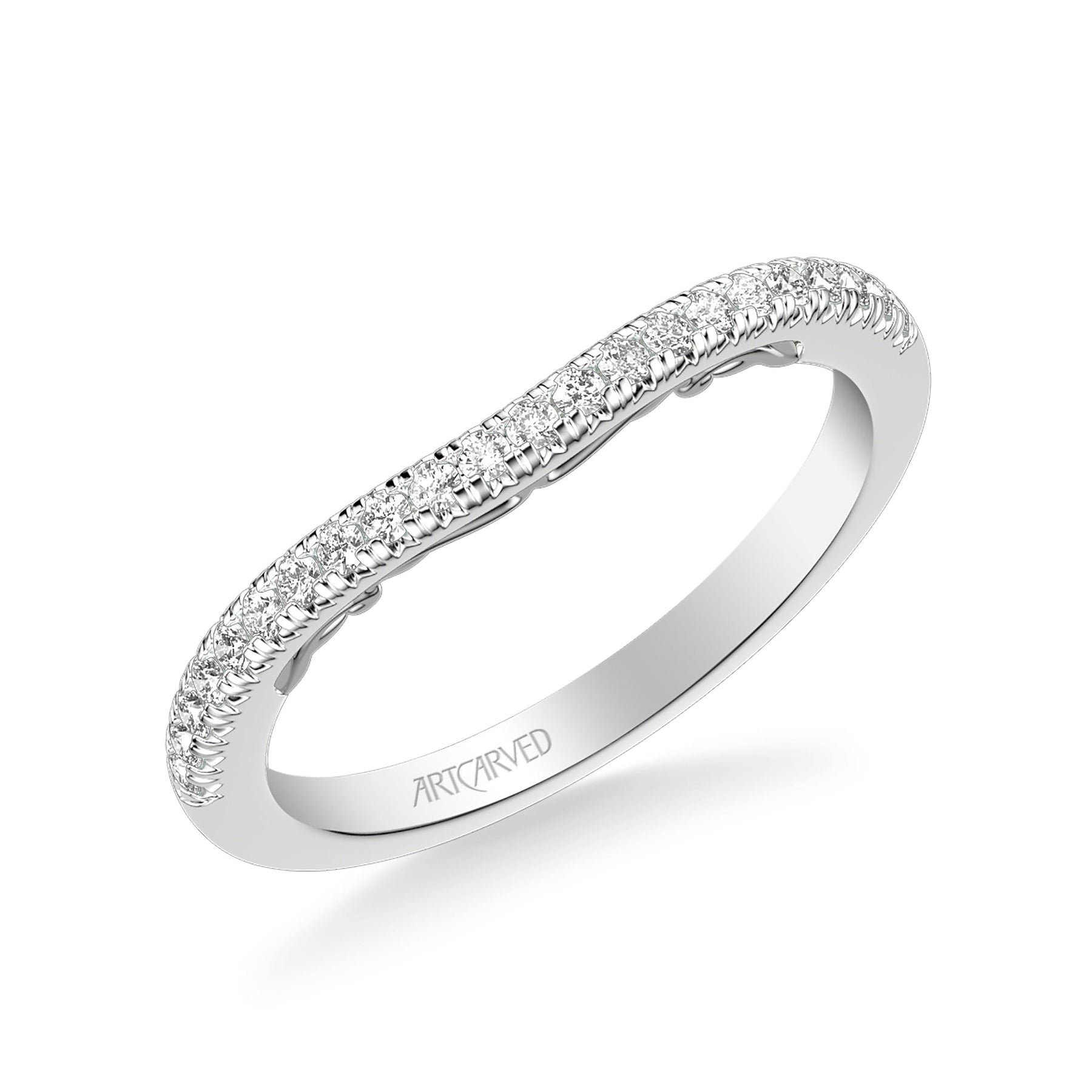Lyric Curved Diamond Wedding Band with Inner Carved details