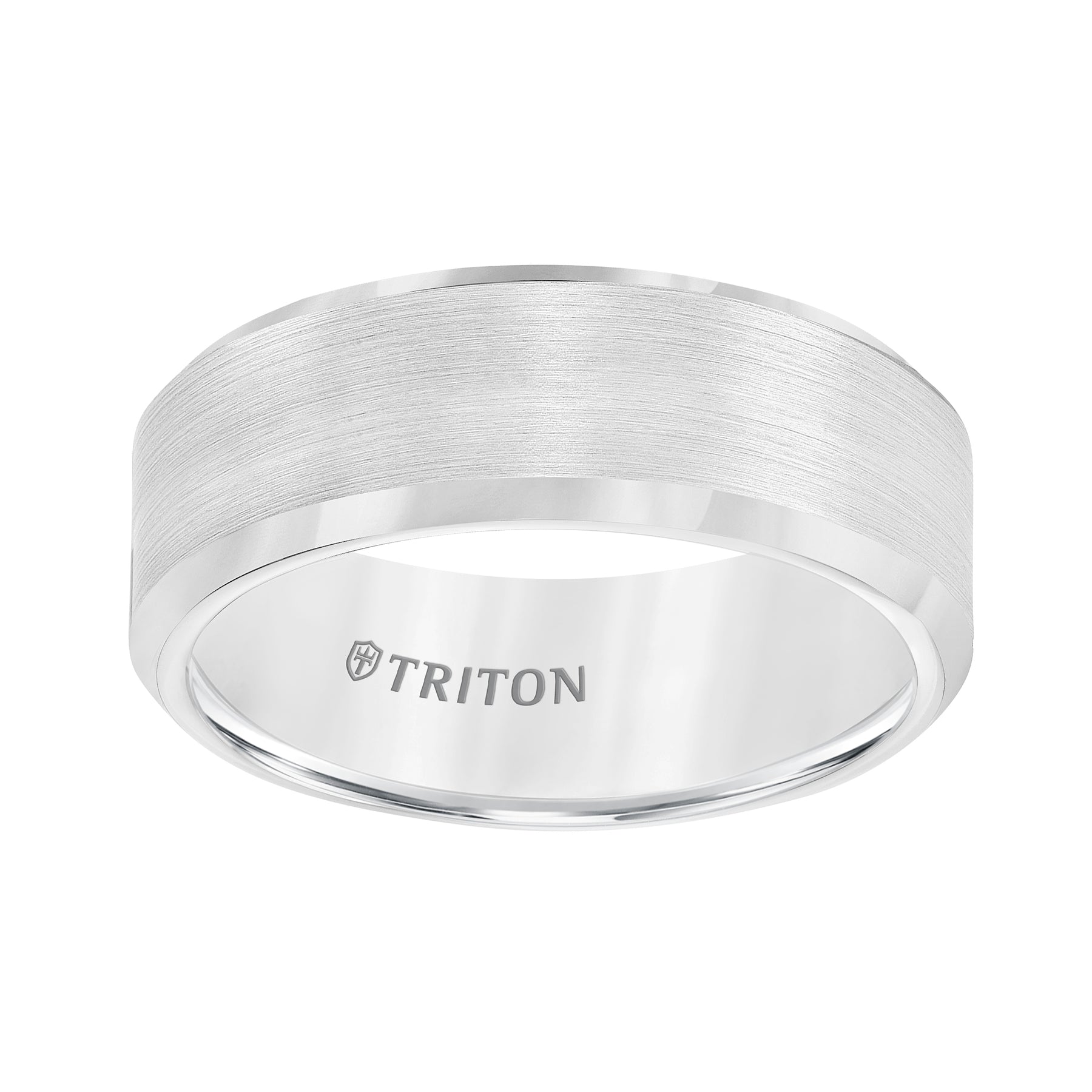 8mm Bevel Edge White Tungsten Carbide Comfort Fit Band with Satin Finish Center and Bright Polished Edge