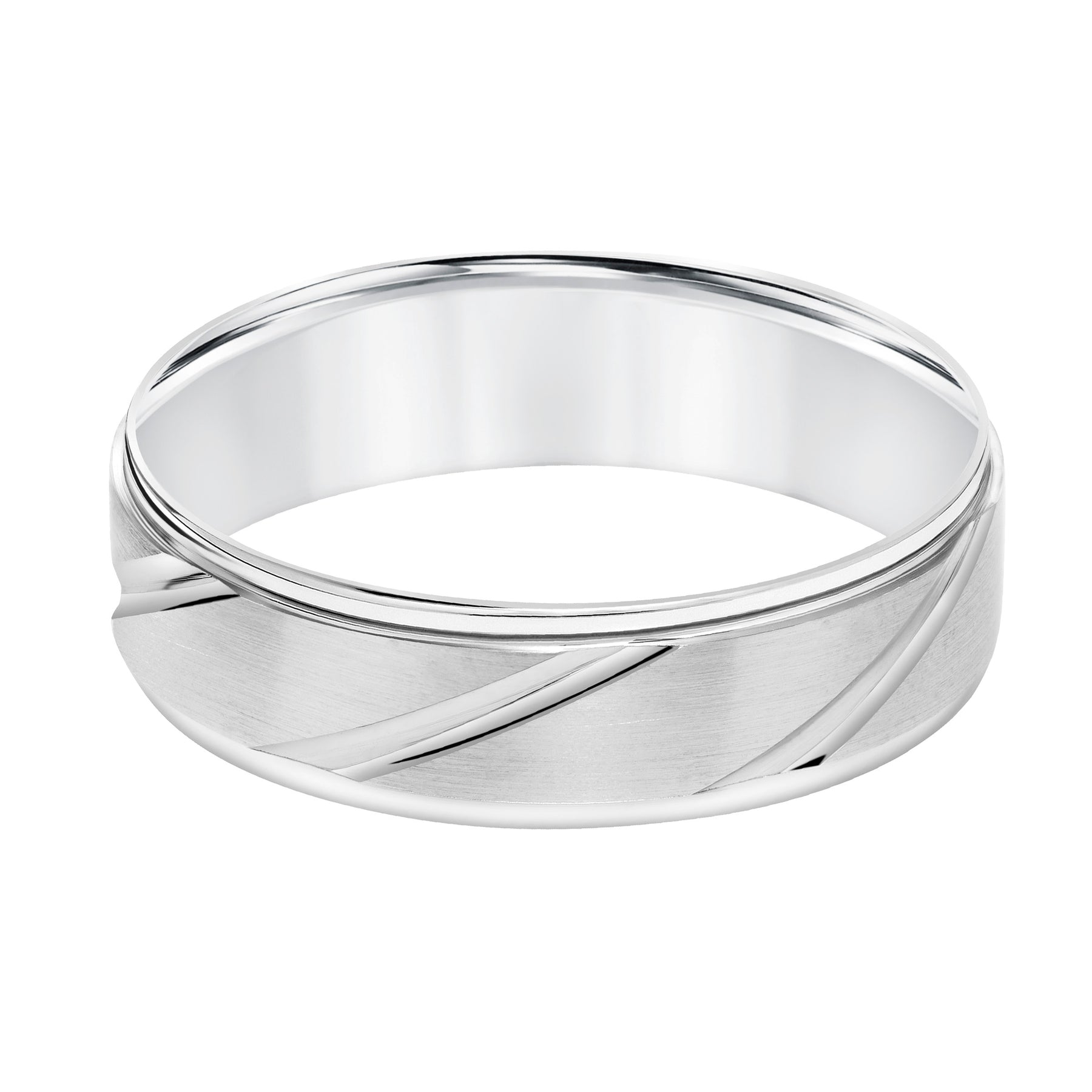Mens Wedding Band with Brush Finish and Polished Diagional Cuts and Polished Round Edge