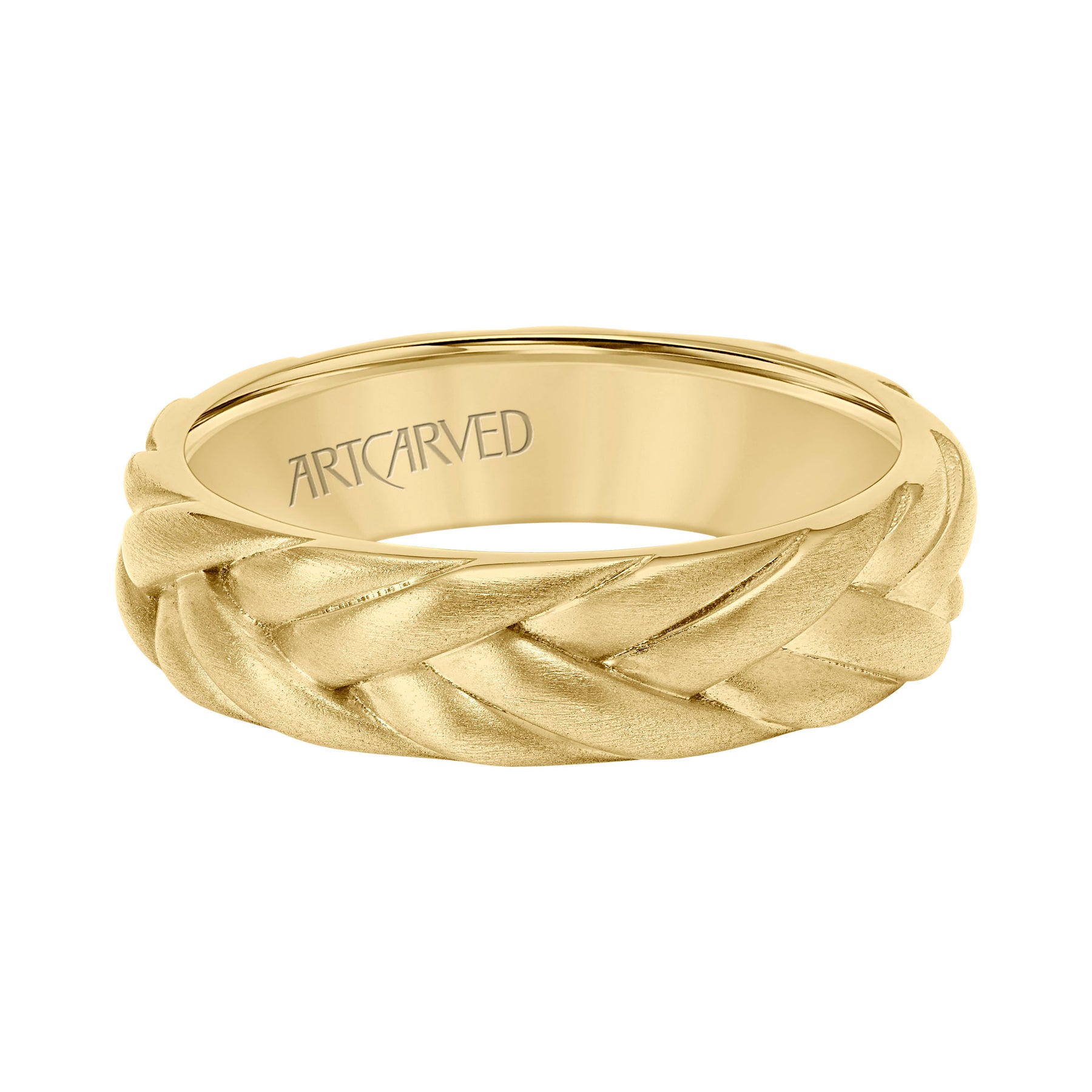 6MM Mens Wedding Band - Brush Finish with Braided Design and Flat Edge