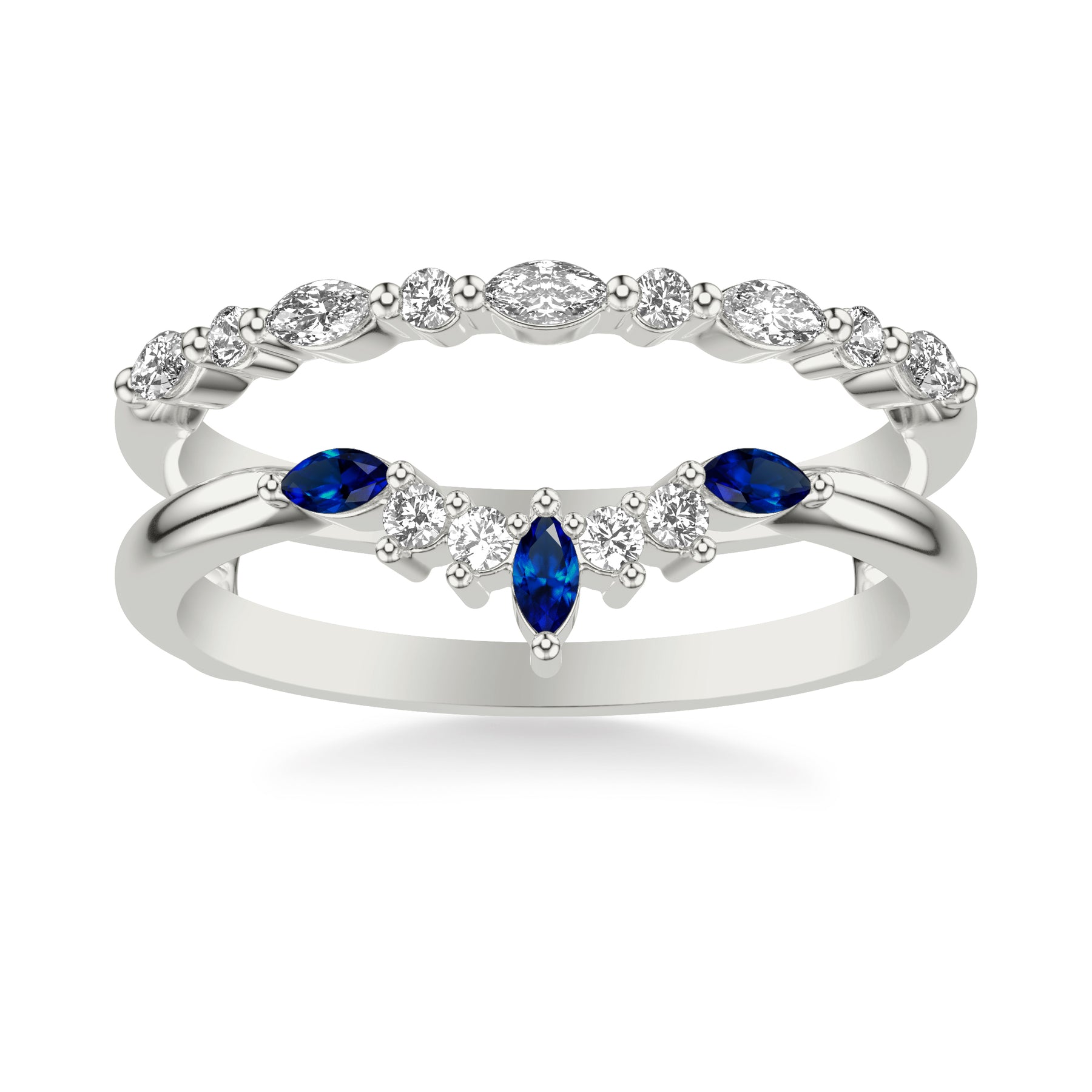 Contemporary Ring Enhancer with Marquise Blue Sapphires and Marquise and Round Diamonds