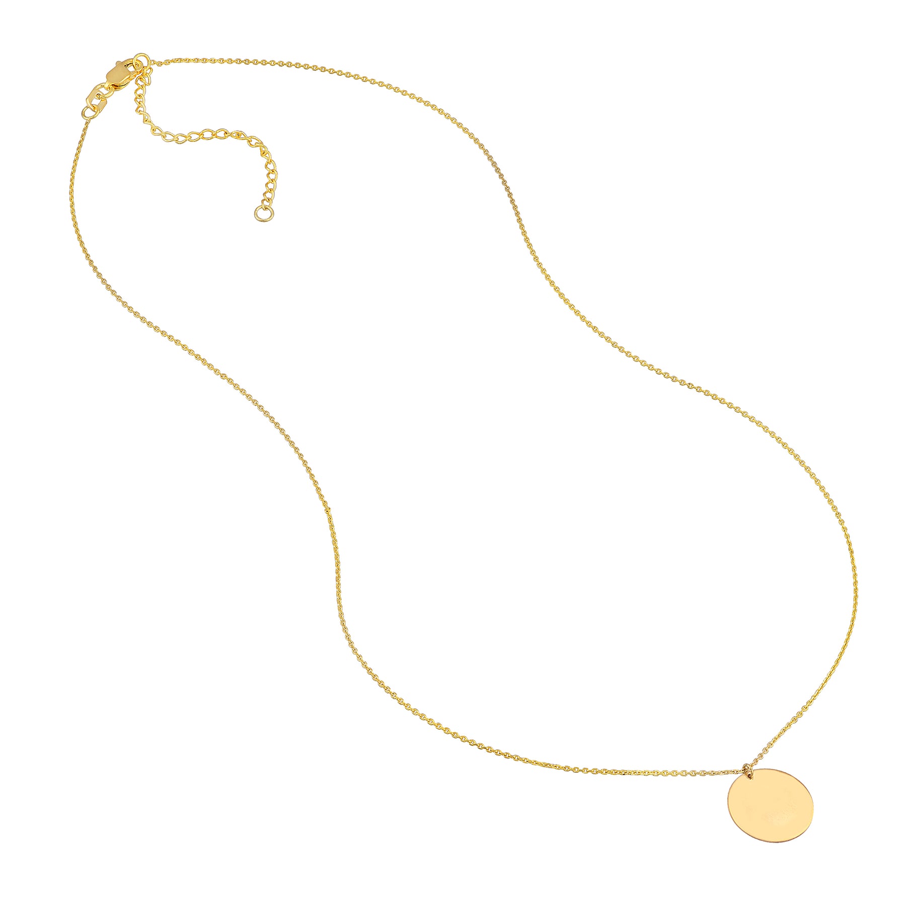 A disc pendant necklace is a great addition to any fashion-forward look. This engravable 13mm pendant, in 14K gold, is adjustable from 16-18 inches.