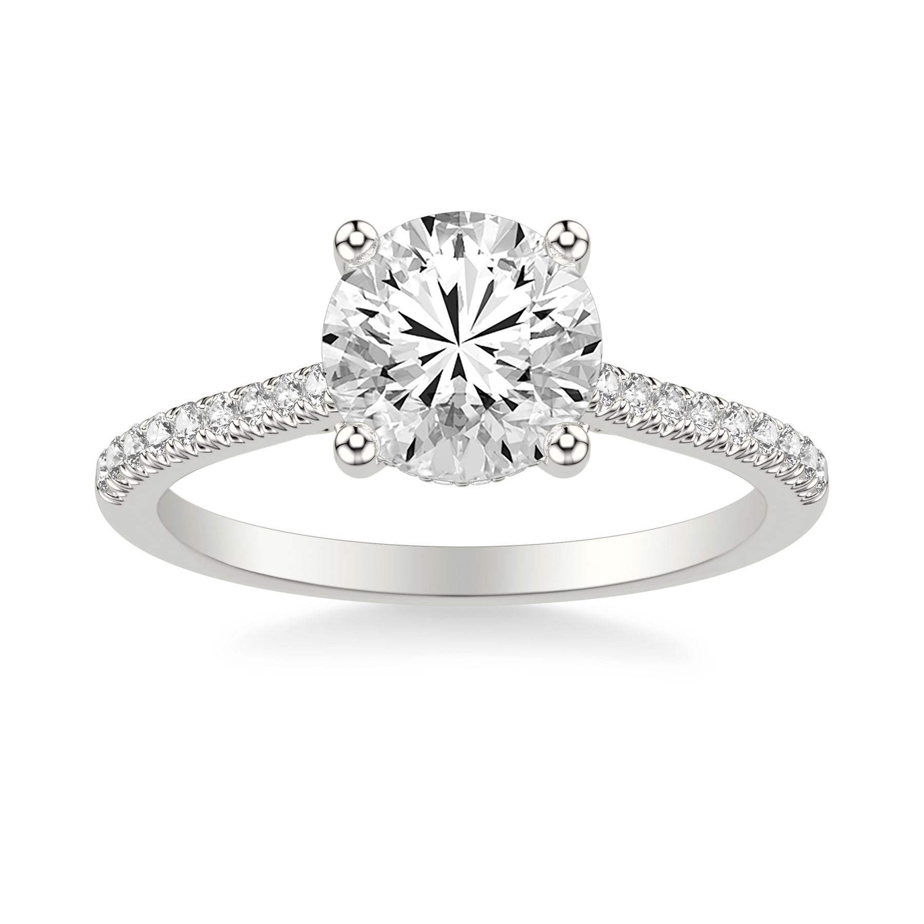Classic Cathedral Setting Engagement Ring with Hidden Halo and Diamond Bridge with Diamond Shank