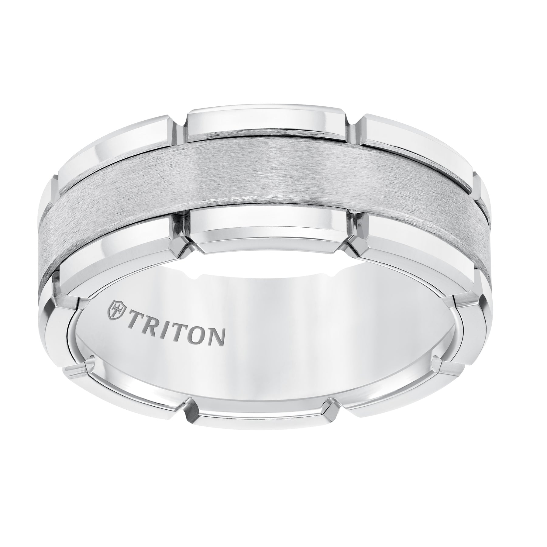 8MM Rose Tungsten Carbide Flat Comfort Fit Band W/Brush Center & Bright Rims