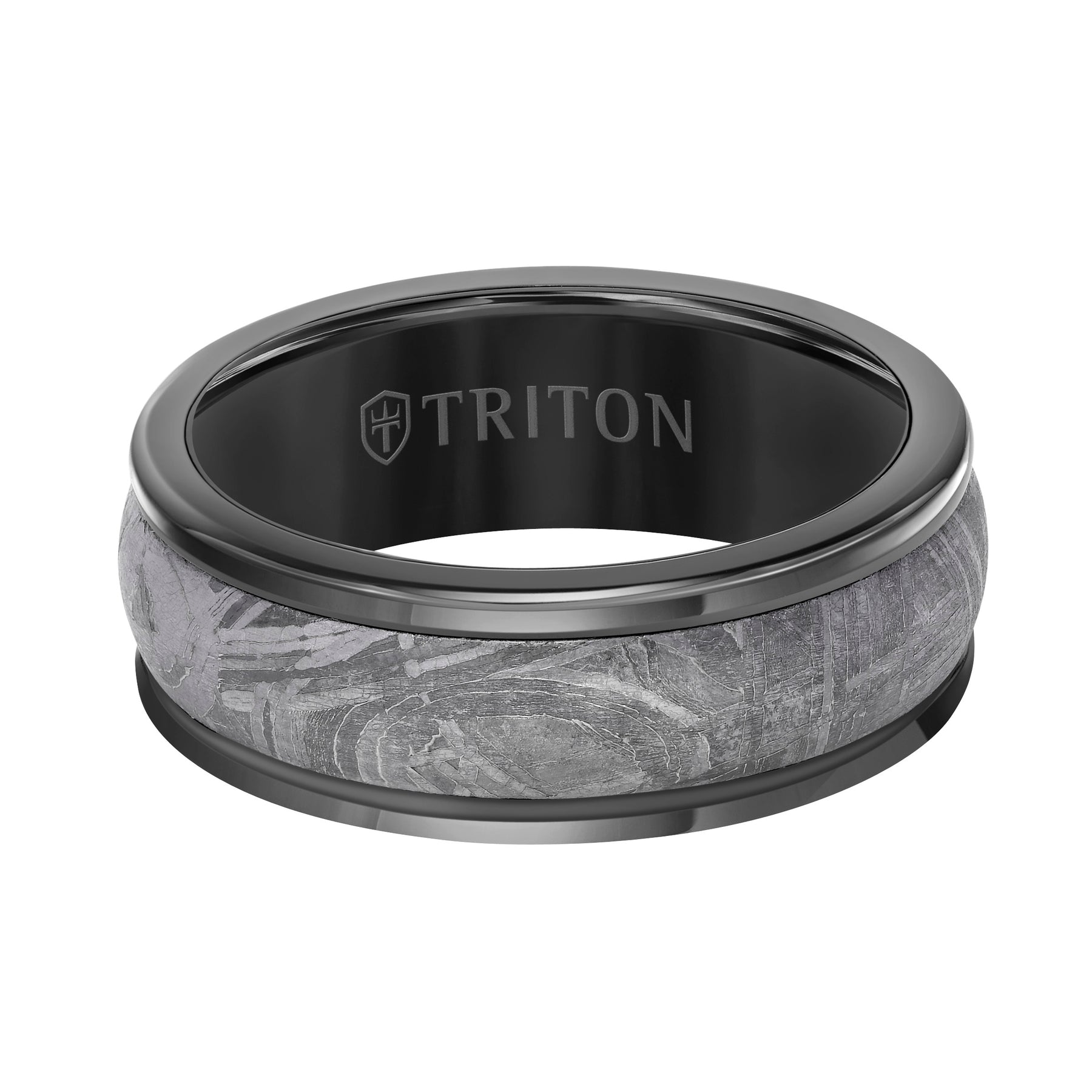 8MM Black Tungsten Carbide Base with Rd Rims/Meteorite Insert Engraved Band