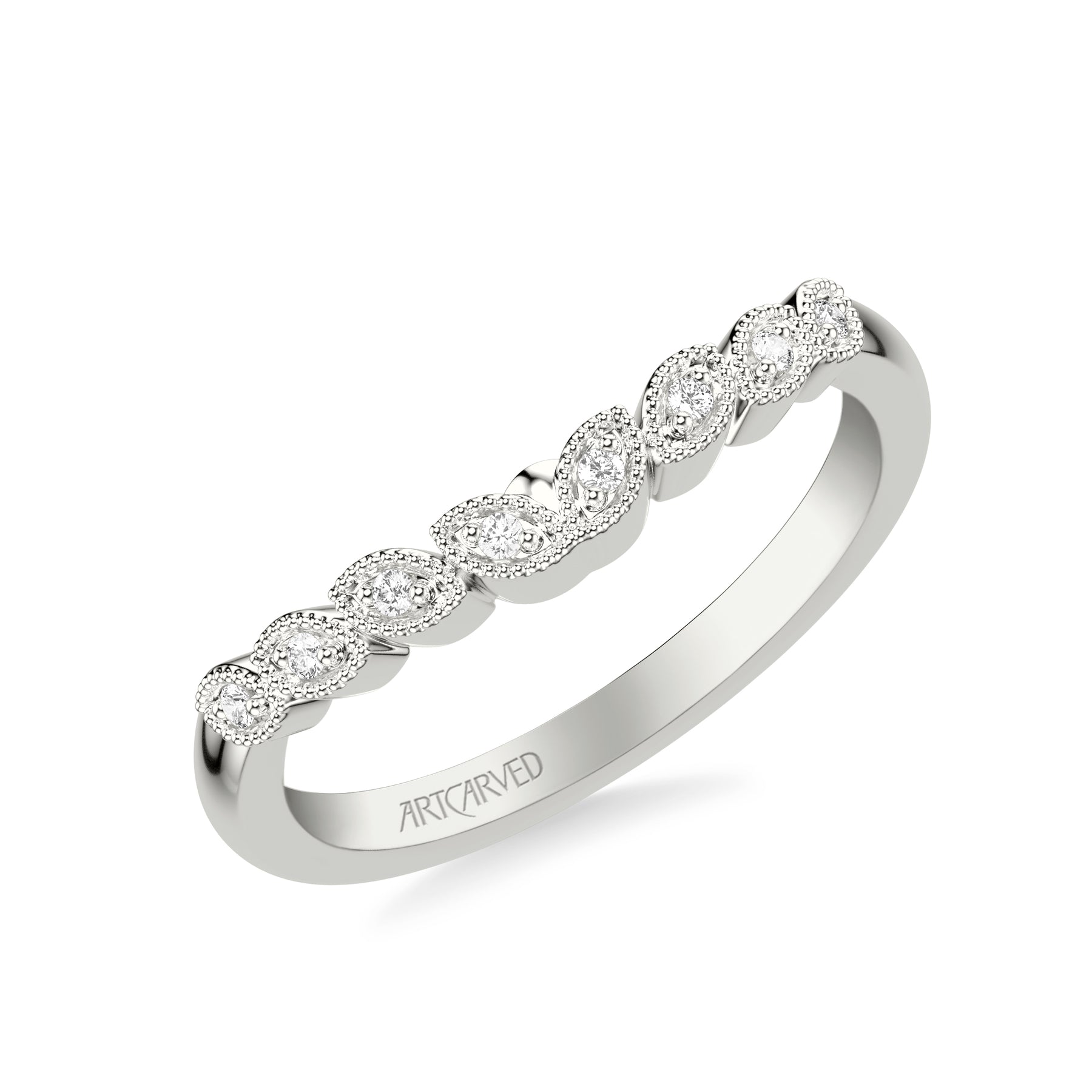 Floral Curved Wedding Band with Milgrain Diamond Petal Motif