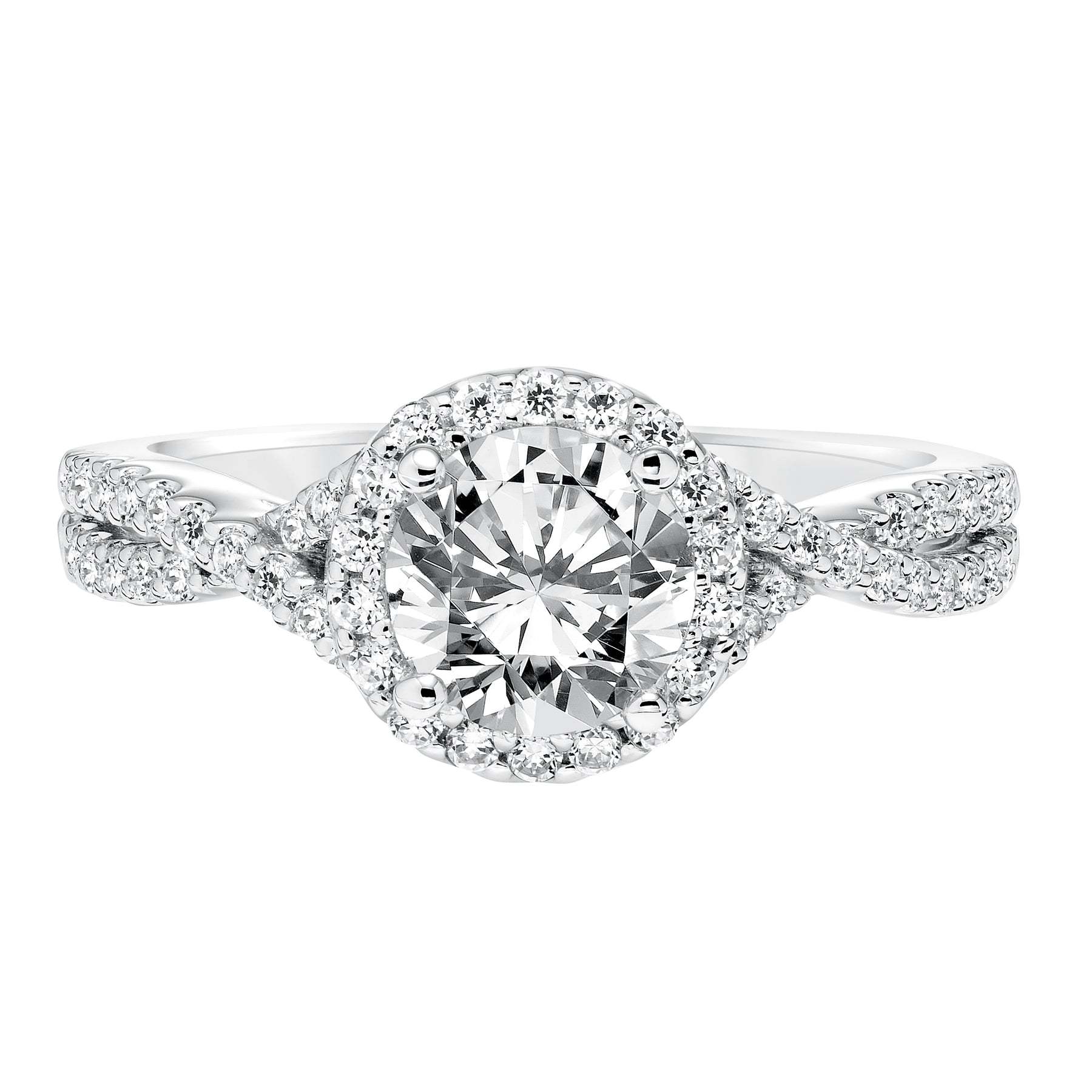 Contemporay Diamond Halo With Split Shank Engagement Ring