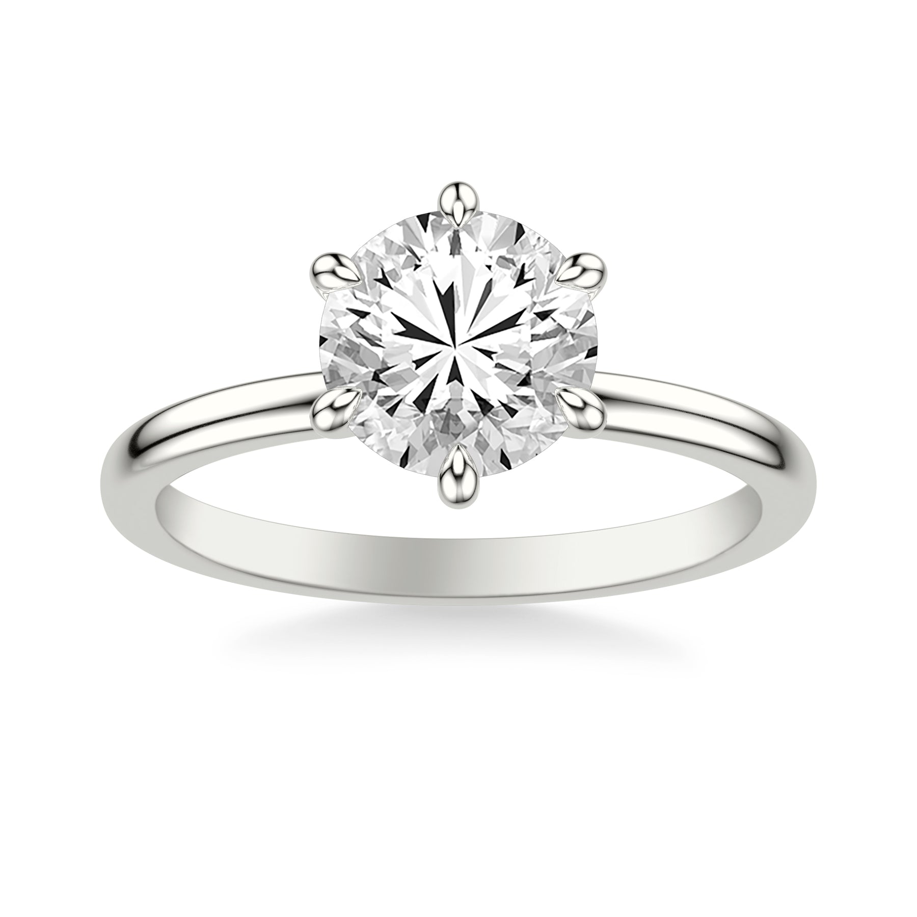 Classic Six Prong Solitaire Engagement Ring and Diamond Collar with Polished Shank