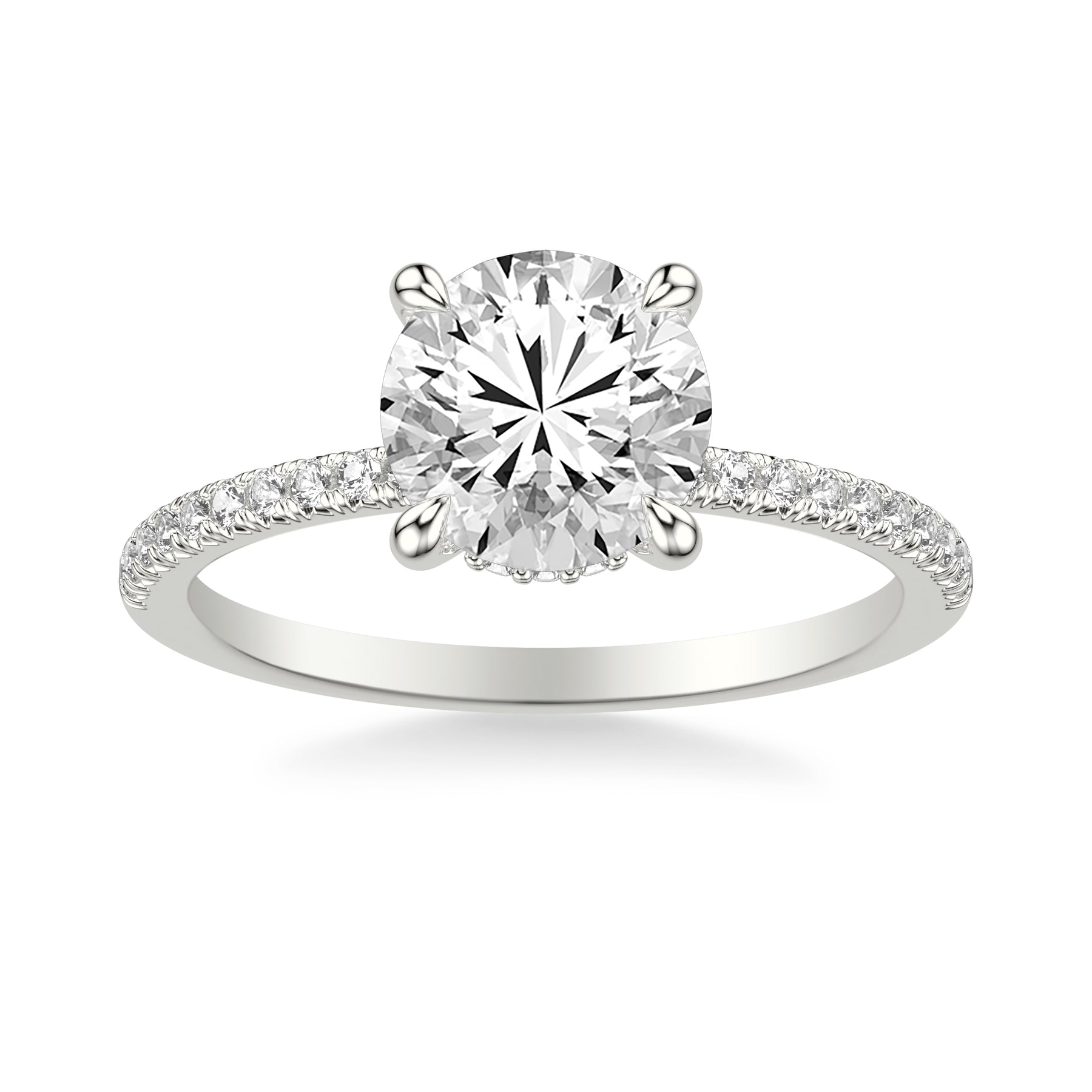 Classic Engagement Ring with Hidden Halo and Claw Prongs with Diamond Shank