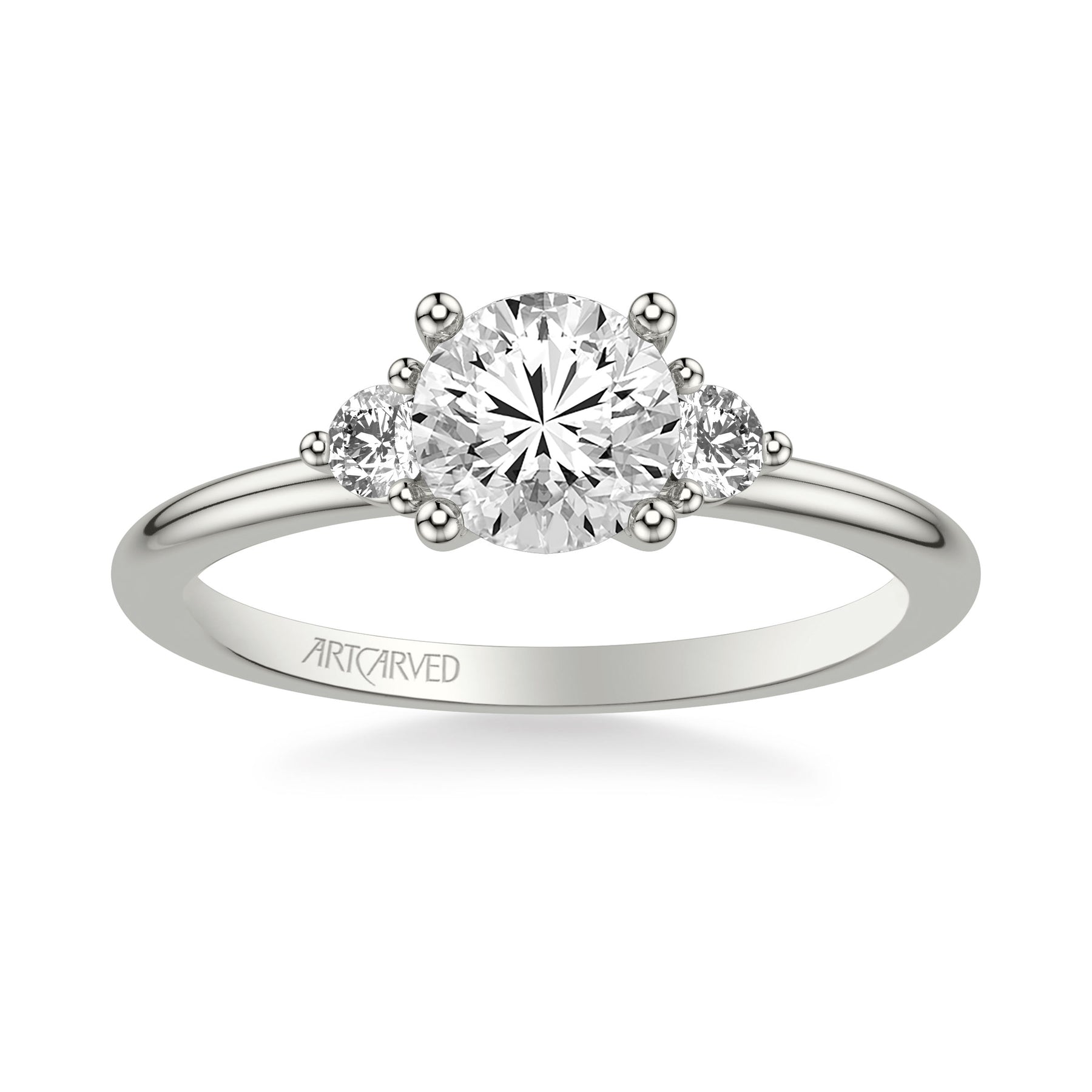Classic Three-Stone Engagement Ring with Round Side Stone Diamonds