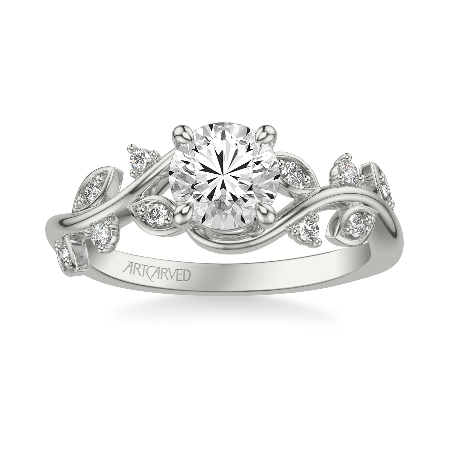 Floral Engagement Ring with Diamond Petal Accents and Floating Diamonds and Polished Shank