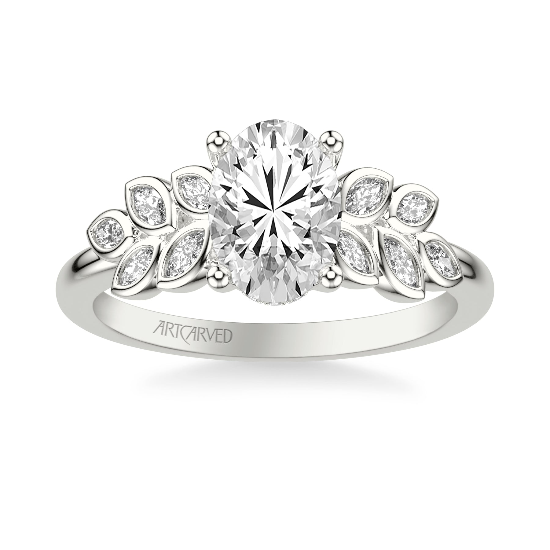 Floral Engagement Ring with Cluster Bezel Set Marquise Diamond Petals and Polished Shank