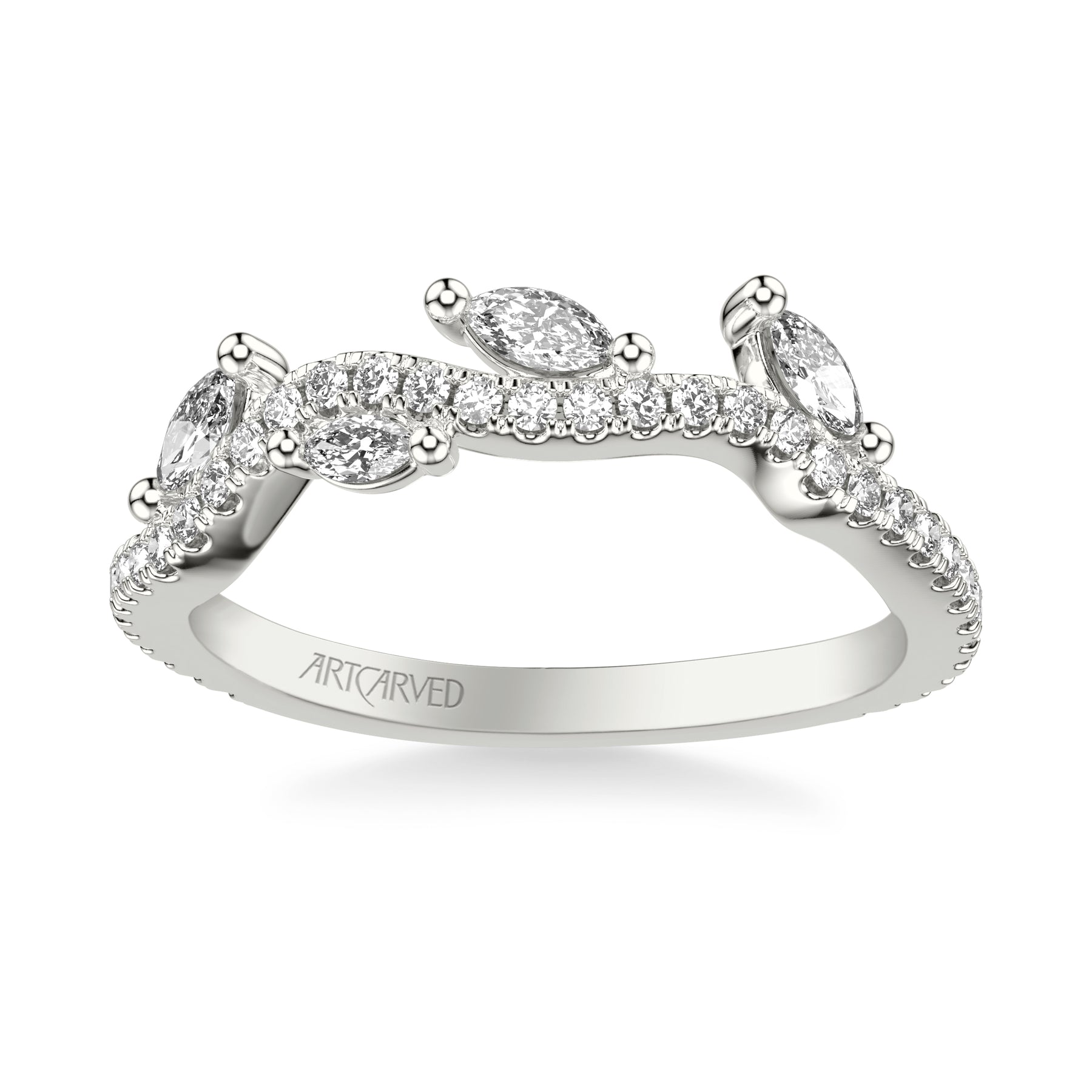 Floral Wedding Band with Floating Prong Set Marquise Diamond Petals and Organic Diamond Shank