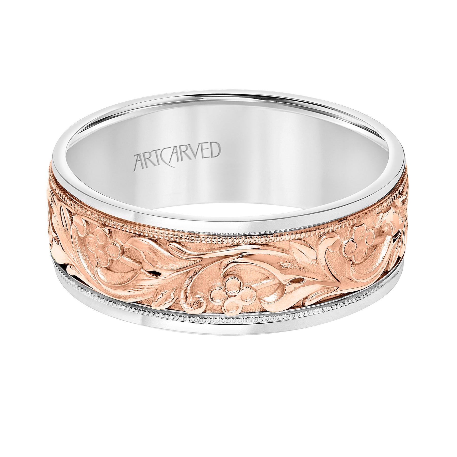 8MM Lyric Collection Mens Wedding Band - Milgrain Detail and Round Edge