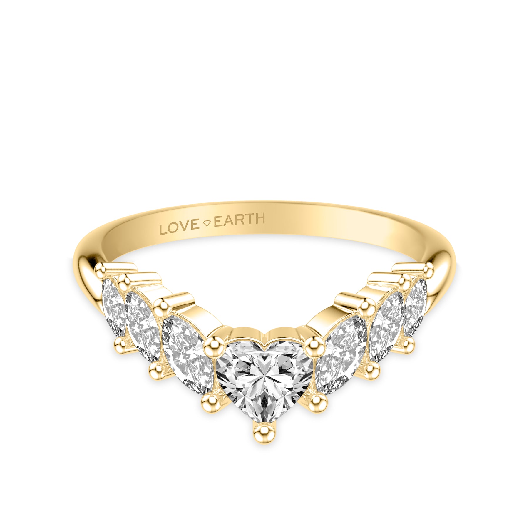 Lab-Created Diamond Graduated Marquise with Heart Center Curved Ring