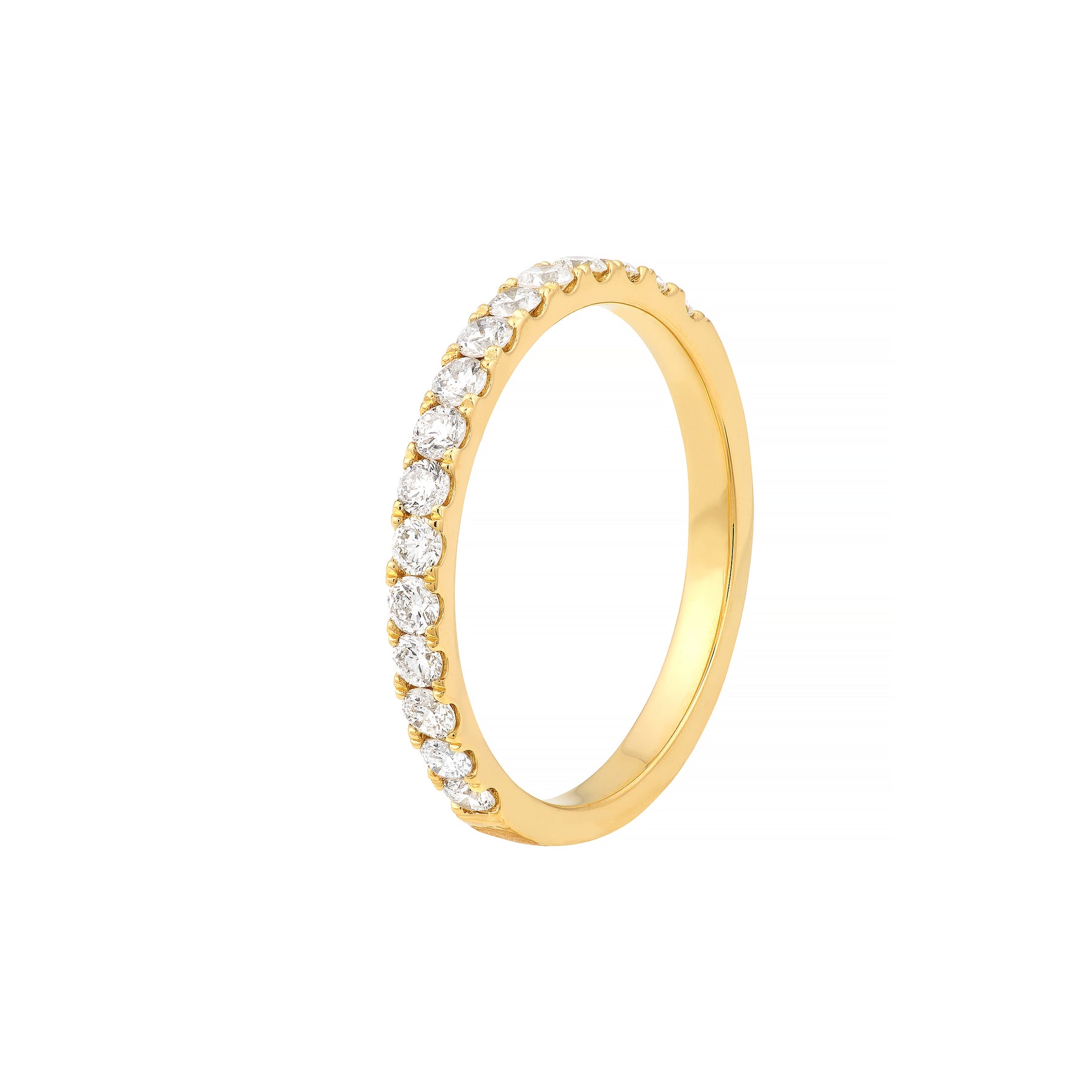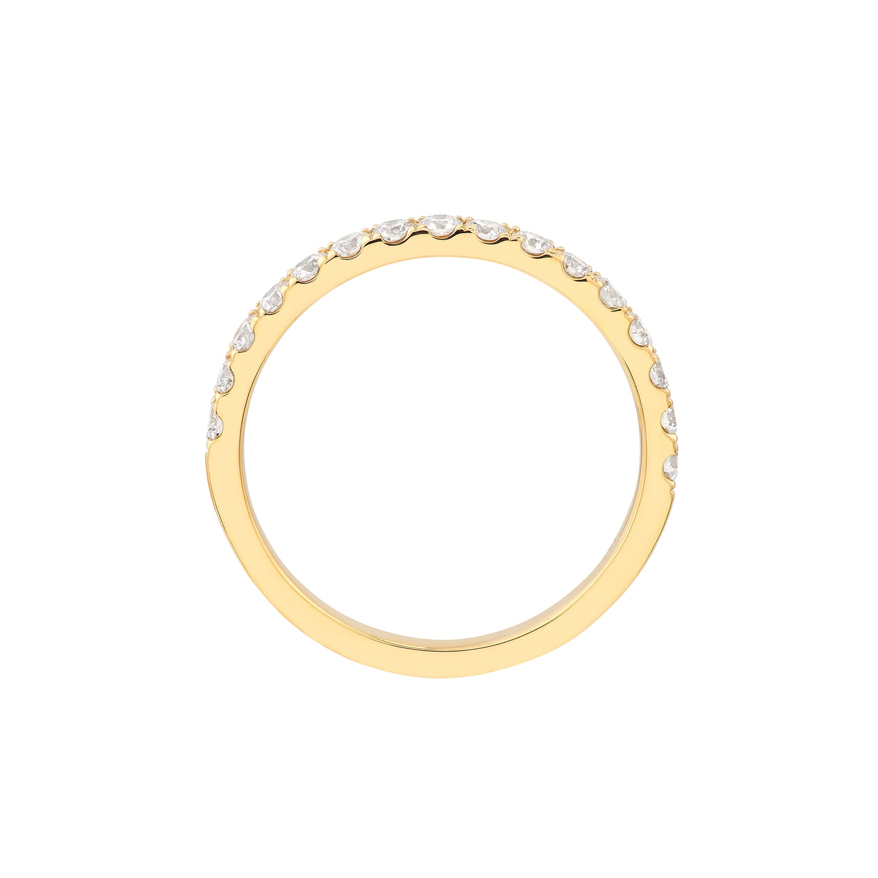 Adorn yourself with diamonds The beautiful 1/2tcw, 2mm diamonds are featured halfway around, adding a vibrant touch to your stack.
